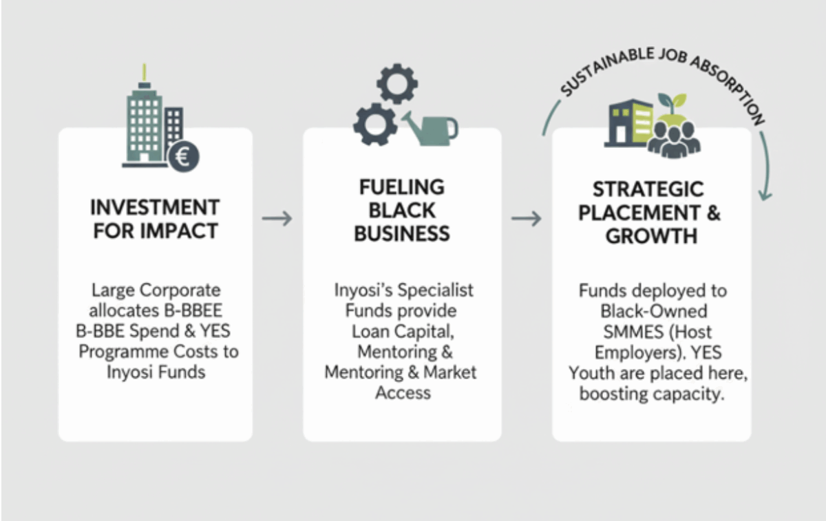 Inyosi’s role as a facilitator is crucial. They employ a unique and integrated approach that specifically links the BEE compliance needs of large corporate clients (the Corporate Investors) with tangible business growth and capacity building for black-owned SMMEs. This structure transforms a single corporate investment into a triple compliance and capacity-building benefit and has the additional benefit of reducing overall lending risk for its Corporate Investors.